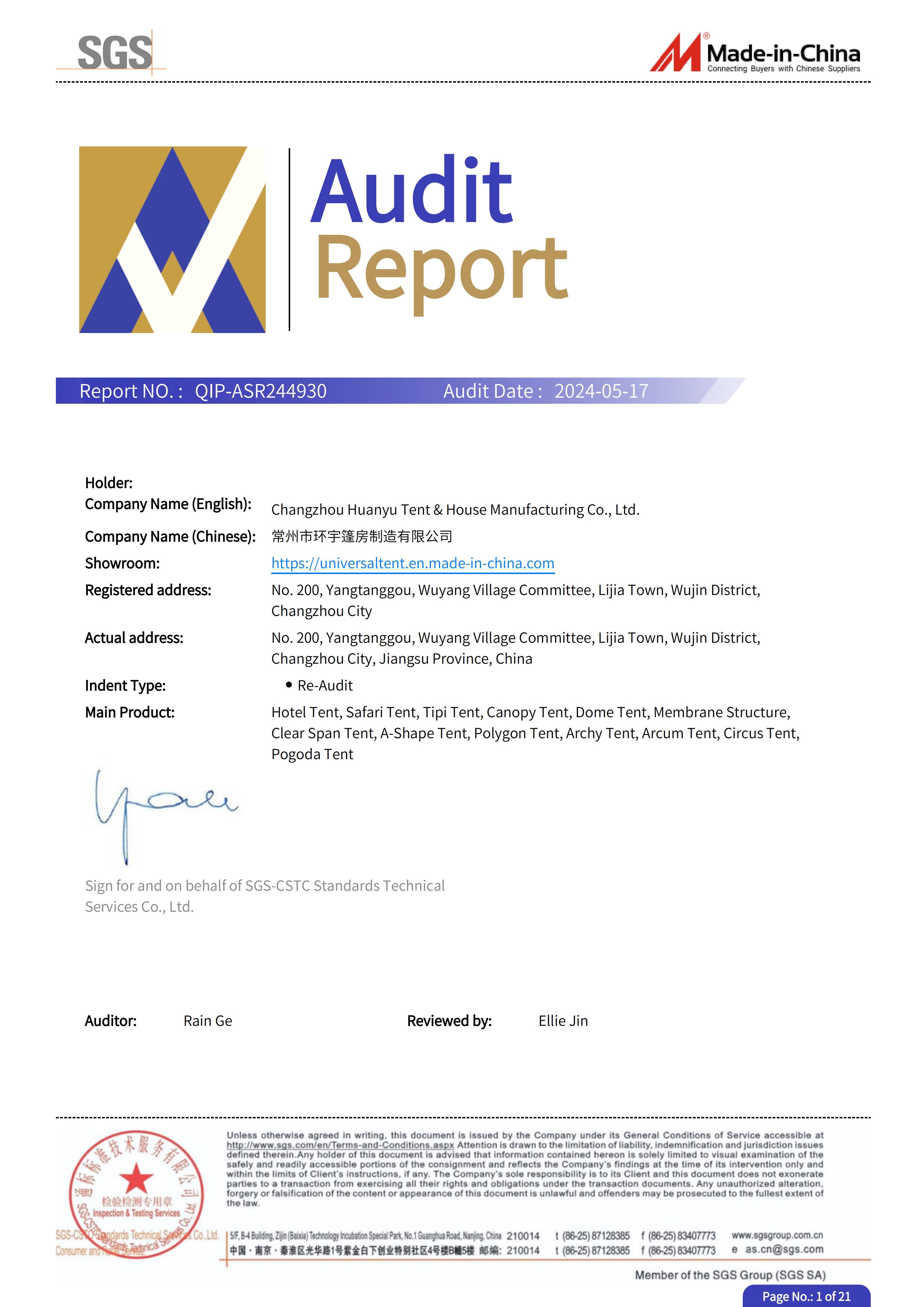 Changzhou Huanyu Tent & House Manufacturing Co., Ltd.