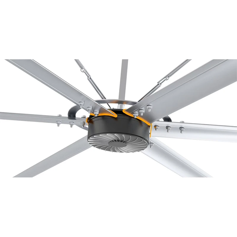 Industrial large ceiling fan for factory and warehouses Permanent magnet large ceiling fan has the advantage of low noise,small volume,light weight,compact structure and beautiful appearance, which can create flow wind in large space, improve environmental comfort and improve labor efficiency of employees.